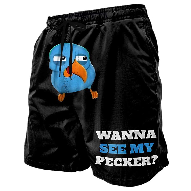 Men's Animal Bird Funny Slang Swim Trunks Swim Shorts Board Shorts Mid Waist Funny Casual Beach Vacation Wear Side Pockets Mesh Lining Elastic Drawstring Waist Designer Clothing Apparel