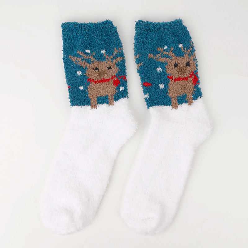 Winter Christmas Socks for Women, Cute Cartoon Coral Fleece Floor Sleep Socks, Thick Warm Holiday Socks, European Style Xmas Plush Mid-Calf Socks