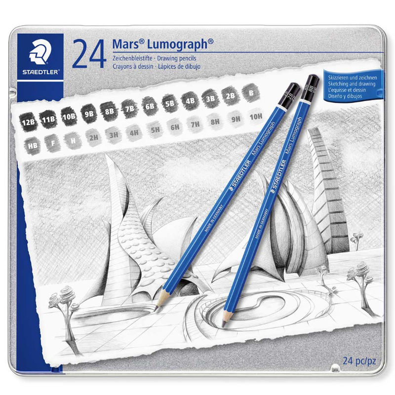STAEDTLER Crayons de dessin et de croquis Mars Lumograph - Ensemble de 24, Divers degrés de dureté