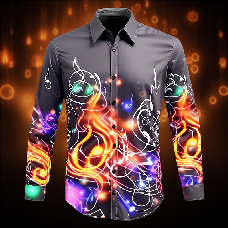 Men's Boardmasters Musical Notes Shirt Button Up Shirt Long Sleeve Artistic Abstract Daily Wear Going out Fall Winter Turndown Print Button-Down Yellow Red