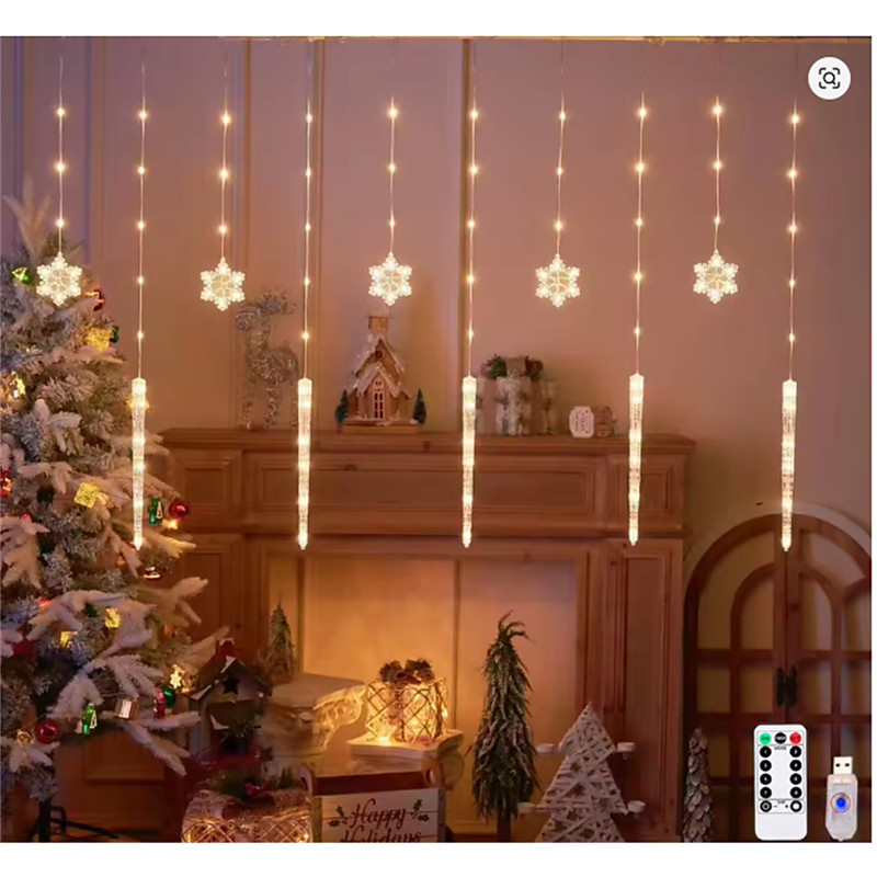 Window Light Indoor Snowflake Ice Pick Curtain Fairy String Lights for Noel Bedroom Holiday Home Lamp Usb Powered