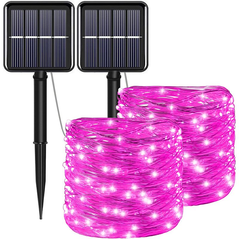 2 Pcs 10M/33FT 100 Led Beads Outdoor IP44 Waterpoof Solar Fairy String Lights Halloween, , Wedding, Valentine's Day, Courtyard, Lawn, Garden, Festive Atmosphere Decoration, Copper Wire Light