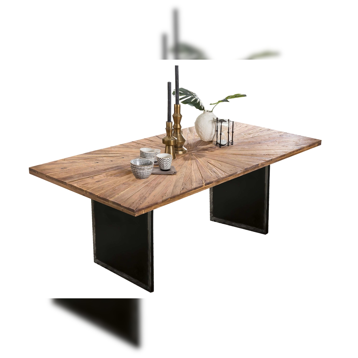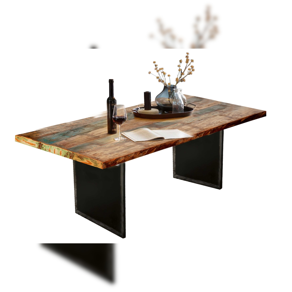SIT Möbel Esstisch aus recyceltem Altholz | Platte 40 mm bunt | Metallgestell schwarz | B 240 x T 100 x H 76 cm | 16106-11 | Serie TOPS & TABLES