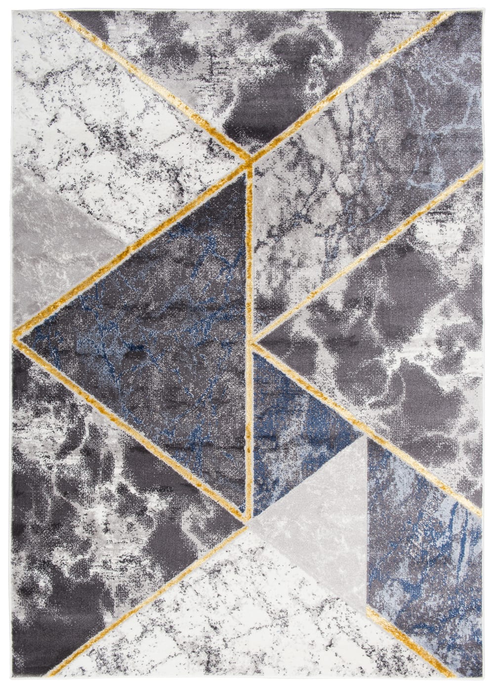 Tappeto soggiorno blu grigio oro marmo geometrico 300x400
