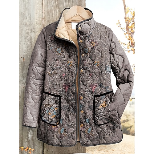 Per donna Giacca trapuntata Impermeabile Antivento Ricamato Attivo Vintage Moda Quotidiano Floreale Vacanza Casa Streetwear Casuale Regolare Collo alla coreana Vestibilità regolare Manica Lunga