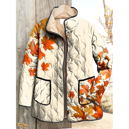 Per donna Giacca trapuntata Caldo Leggero Stampato Elegante Attivo Quotidiano Floreale All'aperto Vacanza Casa Casuale Lungo Collo alla coreana Vestibilità regolare Manica Lunga Capispalla Giallo