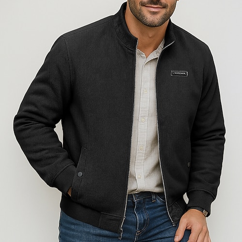 Per uomo Giacca Leggera Formale Casa Comodo Tasca Minimalista Primavera Autunno Tinta unica Neutro Sport e Outdoor Collo alla coreana Regolare Nero Verde Cachi Grigio Giacca