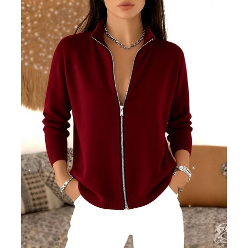 Per donna Cardigan Elegante Vintage Moda Tinta unica Collo alla coreana Lavorato a maglia Manica Lunga Top Regolari Maglia Formale All'aperto Casa Nero Rosso Primavera Autunno