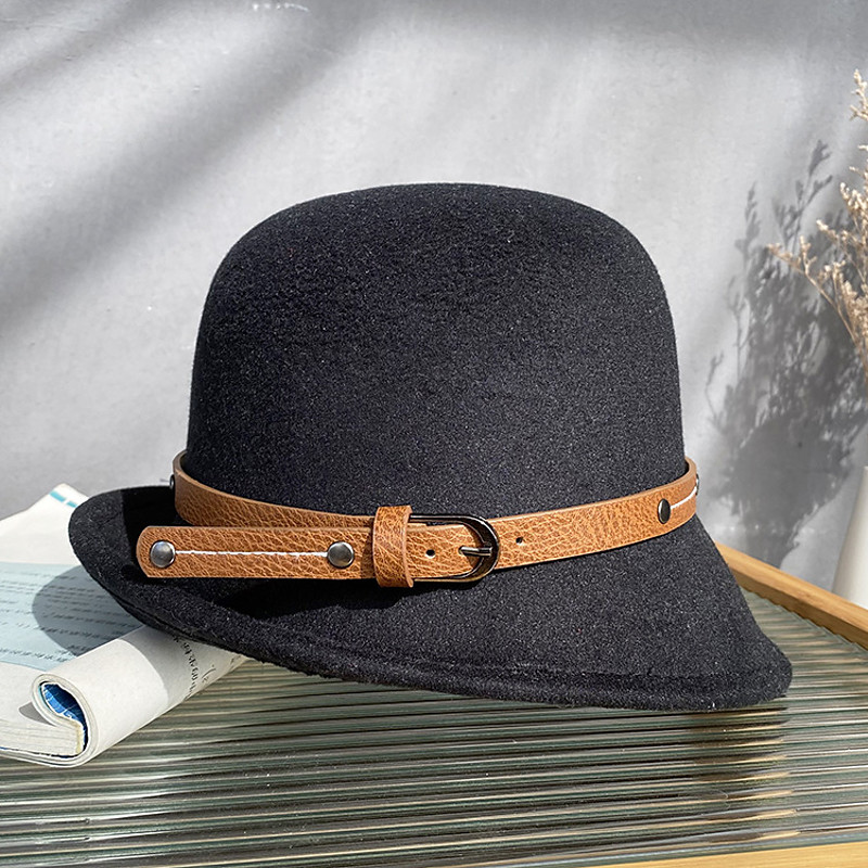 Hats Headwear Polyester Bowler / Cloche Hat Bucket Hat Fedora Hat Casual Holiday Elegant Vintage With Pure Color Splicing Headpiece Headwear
