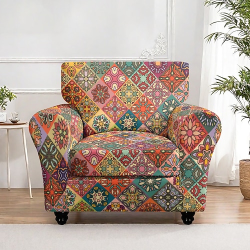 Copridivano elasticizzato con stampa bohémien, antipolvere, multiuso, copridivano in tessuto super morbido con una fodera per cuscino gratuita per poltrona a due posti, 3 posti e 4 posti
