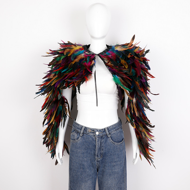 Carnival 2026Rio Carnival Samba Accessories Women's Mardi Gras Feather Cape Shawl, Purple Green Gold Feather Poncho with Jeweled Collar Brazil Festival Performance Costume