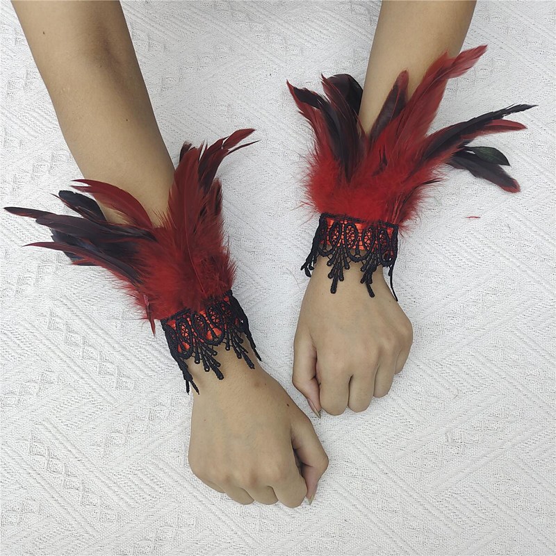 Carnival 2026Rio Carnival Samba Accessories Women's Red Feather Wrist Cuffs with Black Lace Brazil Festival Performance Costume
