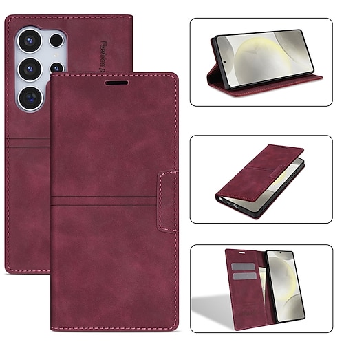 Handy Hülle Handyhüllen Für Samsung Galaxy S26 Ultra Plus S25 S24 S23 S24 FE S22 S21 Ultra Plus S20 A55 5G A35 5G Flip-Cover Mit Ständer Magnetisch Unterstützt kabelloses Laden Retro TPU PU-Leder