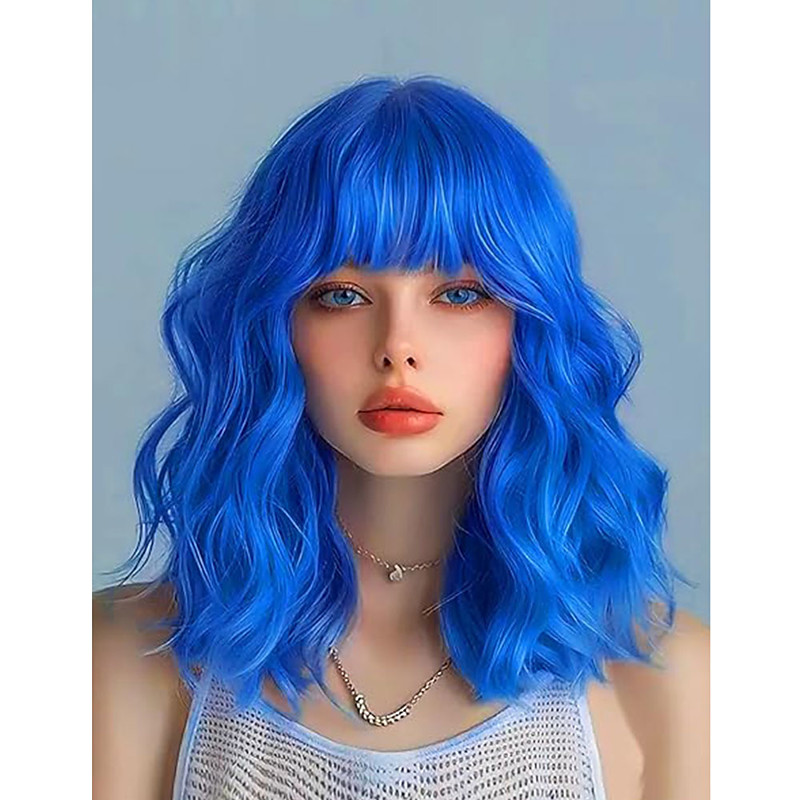 Wigs for Women Short Wavy Curly Bob Wig with Bangs Shoulder Length Synthetic Hair for Daily Party Use