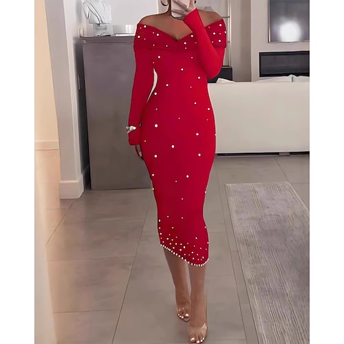 Per donna Mini Abito Vestito da Festa Abito da Cocktail Tubino Moda Moderno Festa serale Feste Occasione speciale Vestibilità regolare Semplice Manica 3/4 Senza Spalle Nero Rosso Oro Primavera