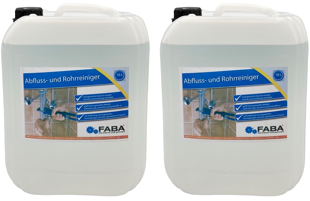 FABA Chemie Abflussfrei, Abflussreiniger, hochwirksam, sehr stark 2 x 10 Liter