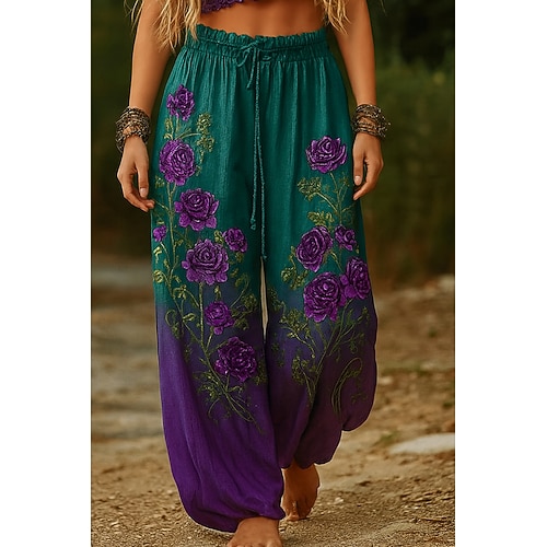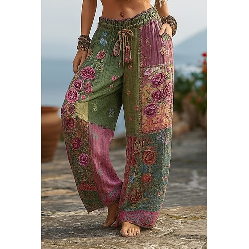 Per donna Culotte Gamba Larga Gamba larga Chinos Vacanza Vintage Stile Etnico Lunghezza intera Vita Alta Floreale Grafico Coulisse Patchwork Stampa Asciugatura Rapida Traspirabilità Morbido Inelastico