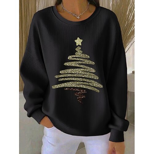 Maglione pullover per donne a Natale grafica casual maniche lunghe collo a giro top regolari abbigliamento quotidiano casual nero bianco verde chiaro rosso autunno inverno