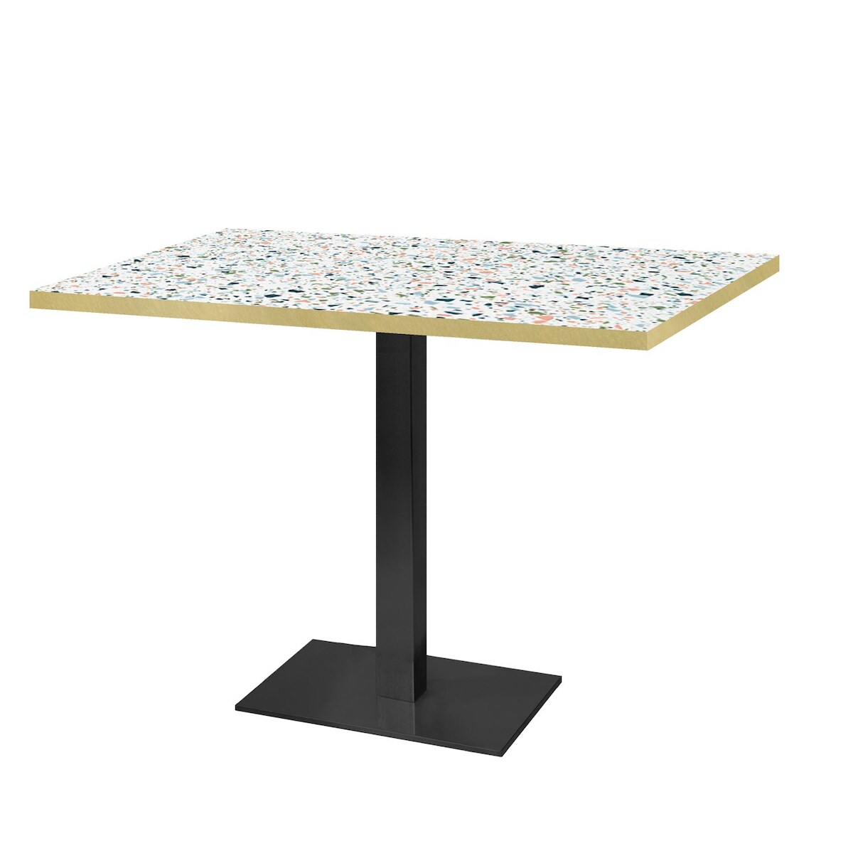 RestooTab - Tisch Milan 120x70 Dekor Terrazzo spectra chip Kanten messingfarben