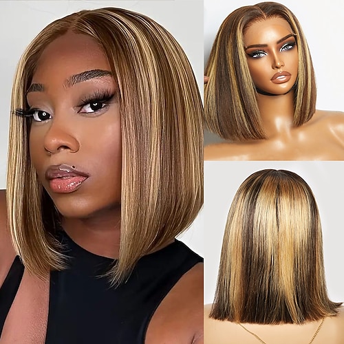 Highlight P4/27# Echthaar Bobo Lace Perücke, glattes Haar, kurze Bobo Perücke, 150% Dichte