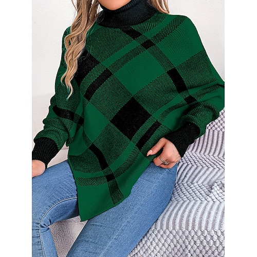 Maglione da donna di Natale casual morbido a quadri a coste dolcevita maniche lunghe top regolari maglia outdoor quotidiana fine settimana rosso verde autunno inverno