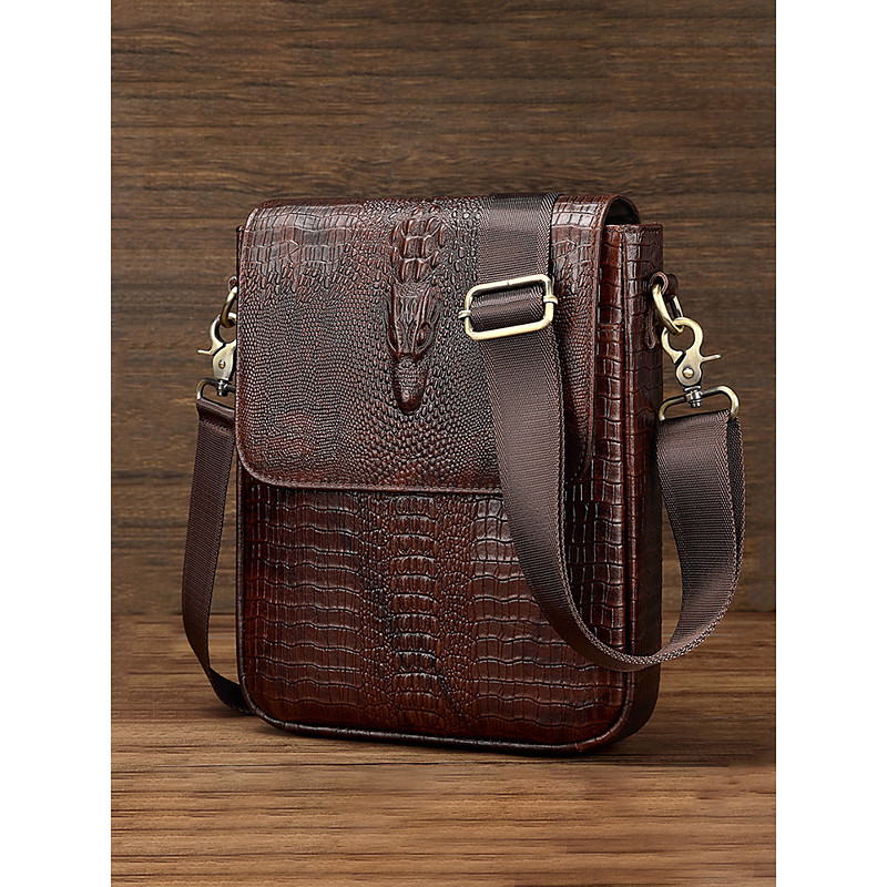 Men's Luxury Crocodile Embossed Leather Satchel - Multi-Color Vertical Shoulder Bag for Office, Work Daily Use