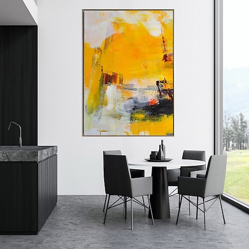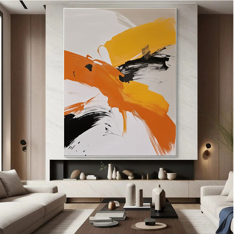 Handmade Large Minimalist Abstract Oil Painting On Canvas Orange Painting Black Acrylic Canvas Art Contemporary White Painting Office Decor Art