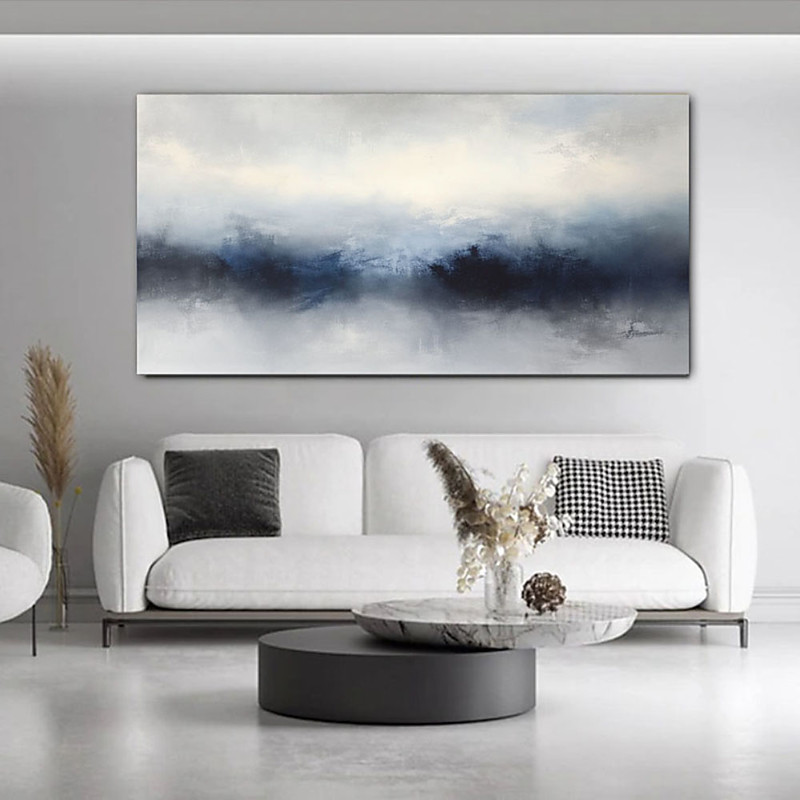 Due pezzi dipinti a mano, pittura a olio astratta, arte murale fatta a mano, moderna, astratta, minimalista, arte originale, arte murale blu acciaio chiaro, struttura acrilica, grande tela dipinta a