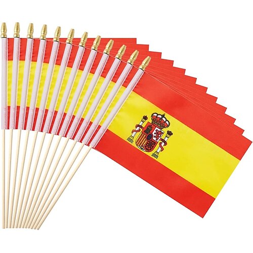 25er-Pack kleine spanische Flaggen, handliche Mini-Flaggen am Stab, 5x8 Zoll, für Fußball-Weltmeisterschaftsspiele, Sportveranstaltungen, Partydekorationen, jubelnde Fans