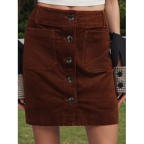 Per donna Gonna Linea A Moda Casual Mini Vita Alta Gonne Semplice Tasca Inelastico Streetwear Quotidiano Marrone Primavera Poliestere Velluto a coste