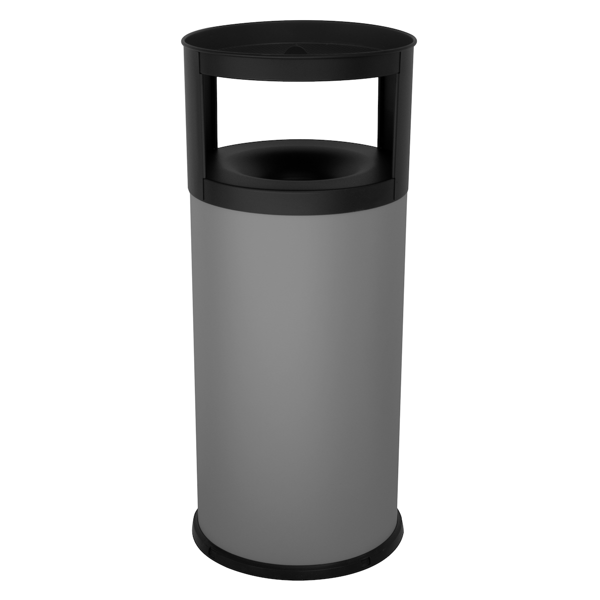 Stil Casa selbstlöschender Abfalleimer mit Aschenbecher, lackierter Stahl, Ø 38xh. 90 cm, Schutzrand aus Kunststoff, 75 Liter, grau.