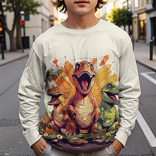 Jungen 3D Dinosaurier T-Shirt Langarm Frühling Herbst Mode Basic Kinder 4-12 Jahre Rundhalsausschnitt Outdoor Lässig Täglich Normale Passform