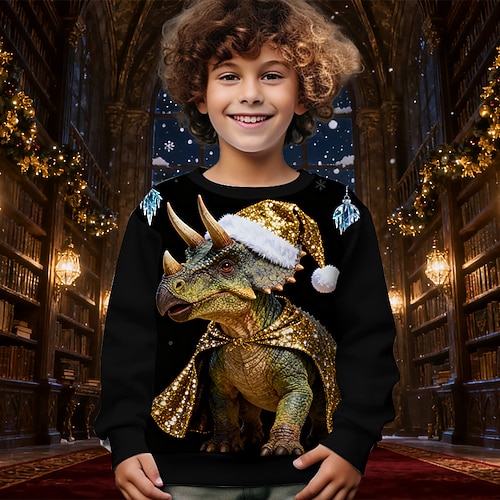 Weihnachten Jungen 3D Dinosaurier Sweatshirt Langarm Frühling Herbst Mode Basic Kinder 4-12 Jahre Rundhalsausschnitt Outdoor Lässig Täglich Normale Passform
