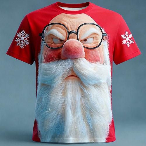 Weihnachten Herren Weihnachtsmann 3D T Shirt Kurzarm T-Shirt 3D-Druck Rundhalsausschnitt Hemd Täglich Designer Künstlerisch Urlaub Party Straße Rot 3 Rote Rot 2 Ganzjahres Bekleidung S M L XL XXL XXXL