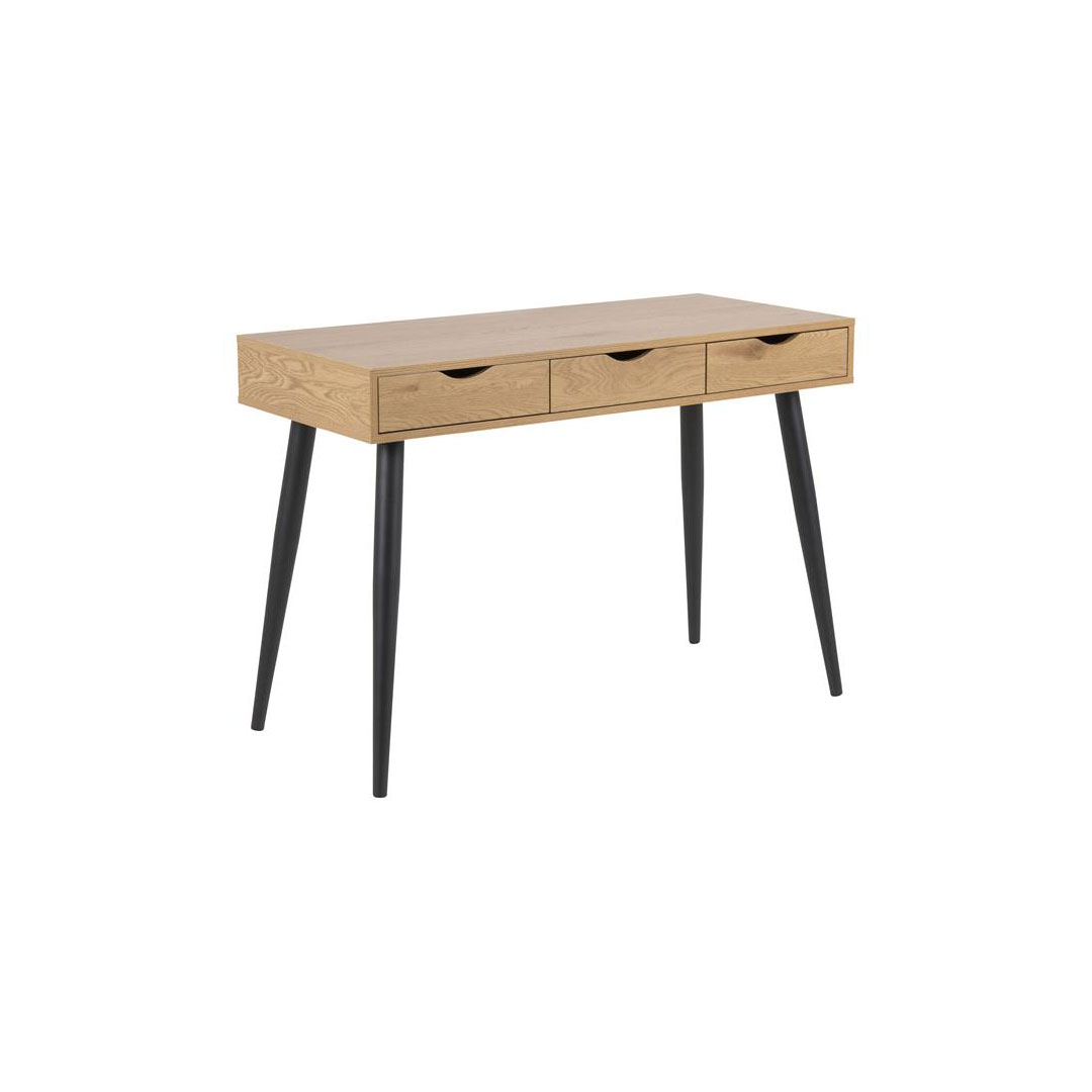 Nete skrivebord med 3 skuffer i vild eg dekor