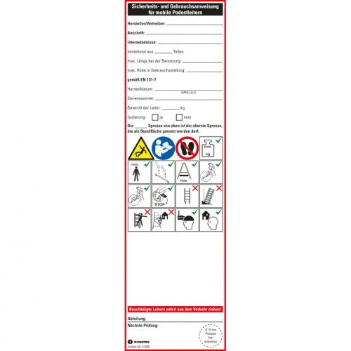 Leiter-Gebrauchsanweisung Podestleitern, Folie, ablösbar, 65x225mm, 2/Bogen, DIN EN 131-3