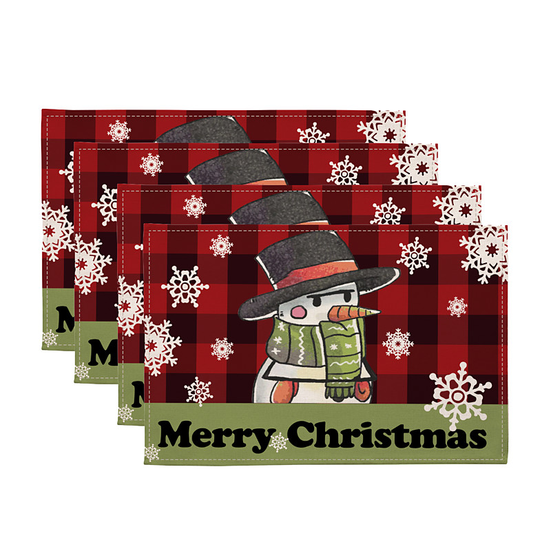 4pcs/set Christmas Placemats – Cotton and Linen Seasonal Winter Xmas Table Mats with Snowman Reindeer Design for Outdoor Indoor Home Party Kitchen Dining Decor, 30x45cm (12x18 Inch)