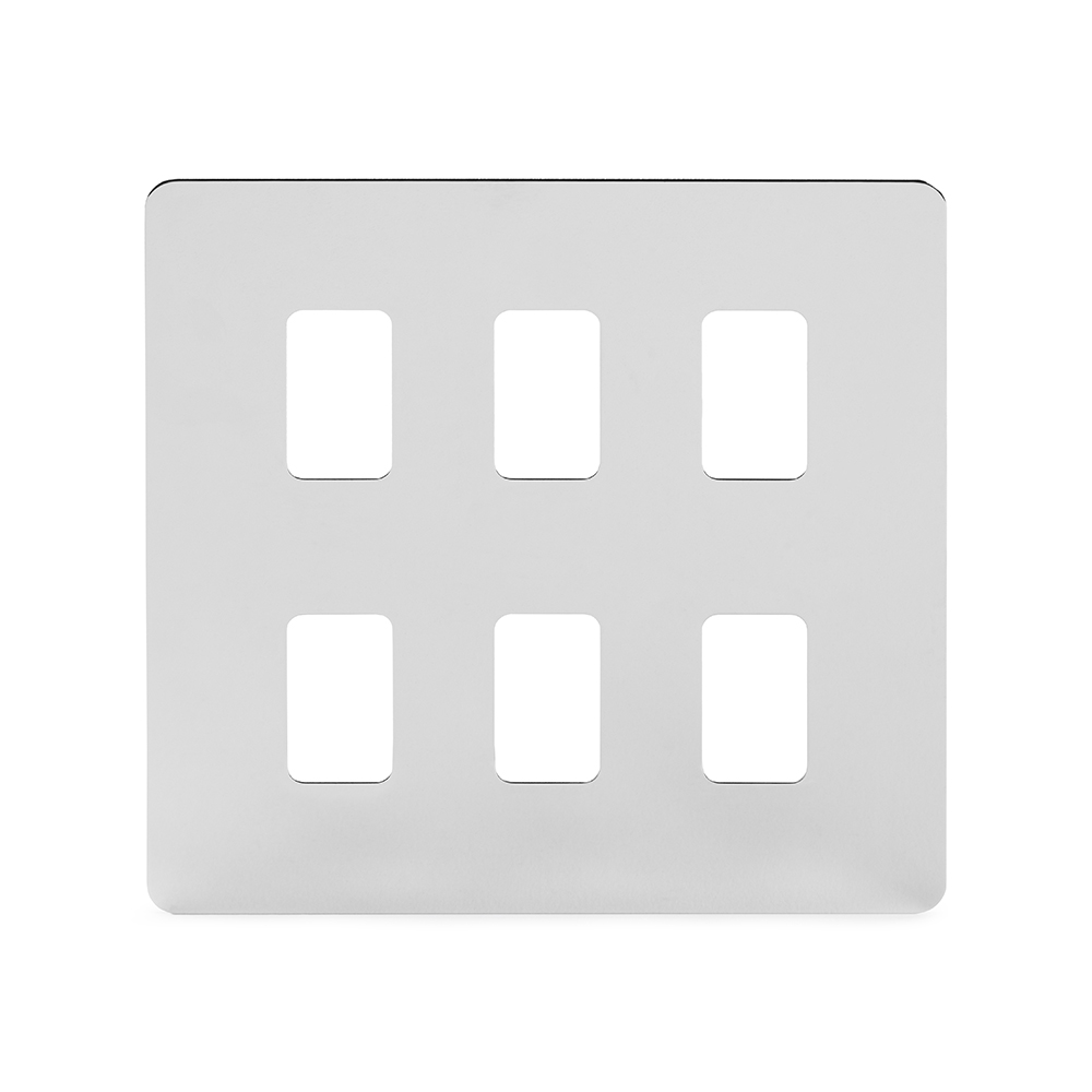 Soho Lighting Polished Chrome Flat Plate 6 Gang RM Rectangular Module Grid Switch Plate - Size: H 146mm x W 146mm
