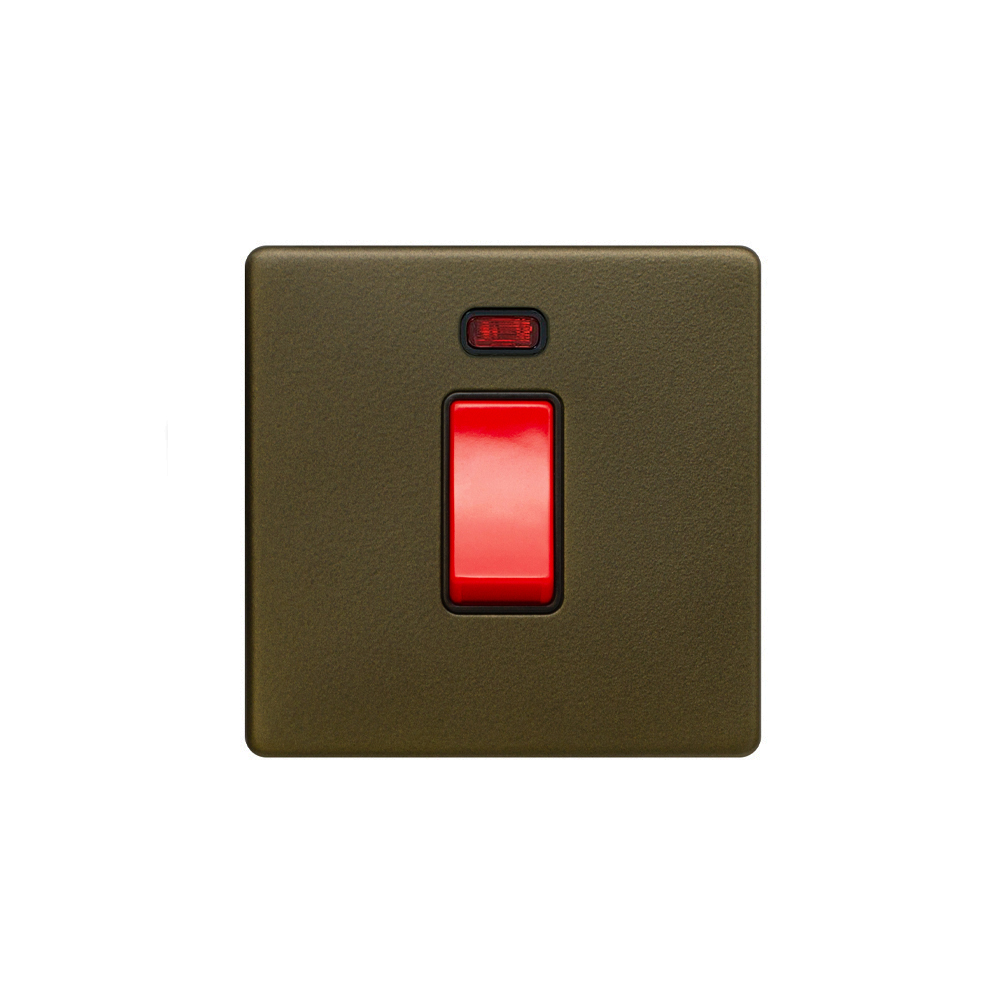 Soho Lighting Bronze 45A 1 Gang Double Pole Switch & Neon (Sml Plate) Screwless - Size: 86mm x 86mm