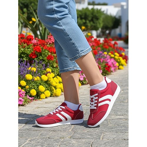 sneakers casual da donna con strisce bianche scarpe da passeggio con lacci per l'uso quotidiano e lo street style