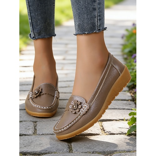 mocassini comodi gialli da donna – scarpe da passeggio casual in similpelle con dettagli floreali, per lavoro, shopping, viaggi e uso quotidiano