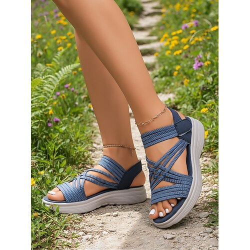 sandali da passeggio comodi con cinturini blu da donna: sandali sportivi leggeri per passeggiate all'aperto, viaggi, vacanze e uso quotidiano