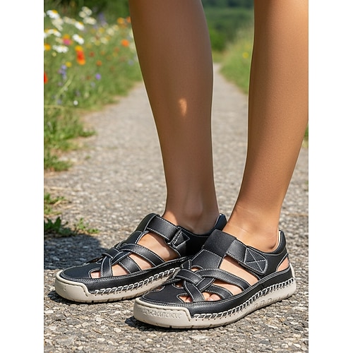 sandali casual da donna comodi – sandali da passeggio con supporto plantare vintage in velcro con design cavo per l'estate e l'outdoor