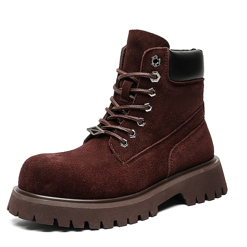 stivali da lavoro alla caviglia in pelle scamosciata color cachi da uomo con suola robusta e morbida fodera interna, stivali casual leggeri da esterno per l'autunno e l'inverno