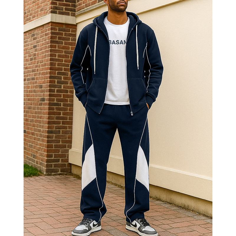 Men's 2 Piece Tracksuit Lounge Hoodie Sweatsuit Sets Zip Up Color Block Clothing Suit Spring Black Blue Gym Workout Running High Waist Lightweight Fashion Long Sleeve Sport Activewear Micro-elastic