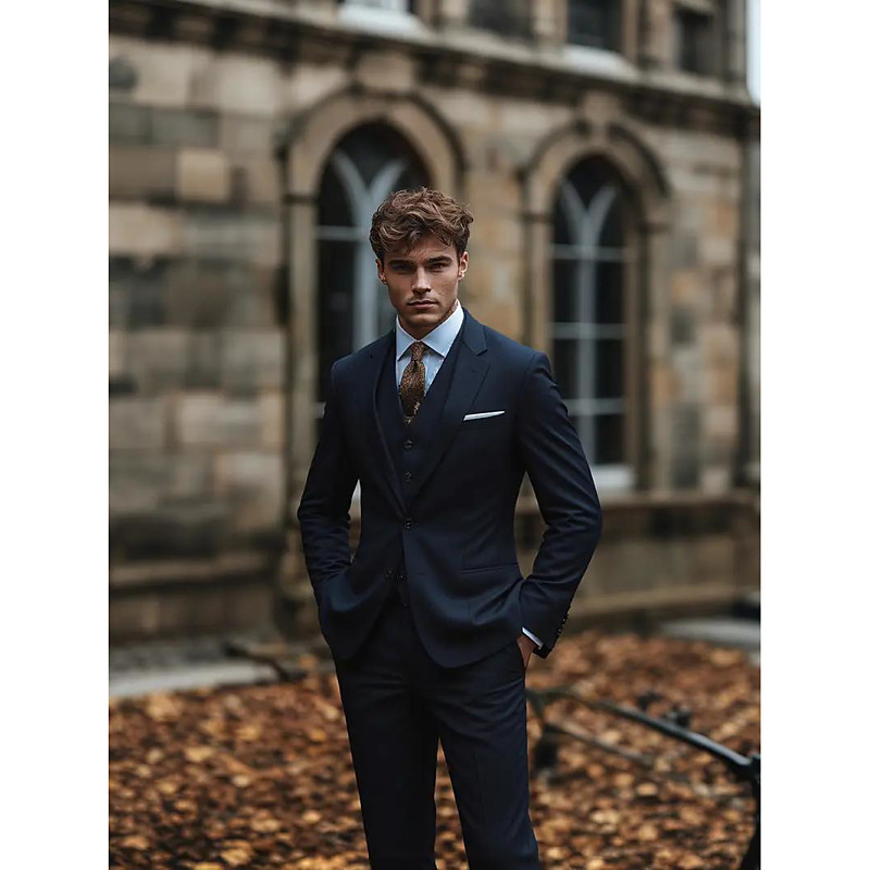 Men's Business Wedding Suits Notch Lapel Beige Fashion Formal Solid Colored Standard Fit 3 Piece Single Breasted Two-buttons