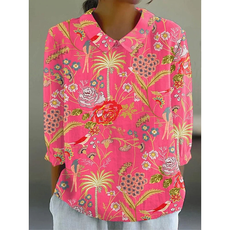 Women's Blouse Long Sleeve Peter Pan Collar Casual Floral Graphic Vintage Tropical Daily Collar Regular Tops Daily Buttons Print Pink Purple Green Light Blue Summer Spring