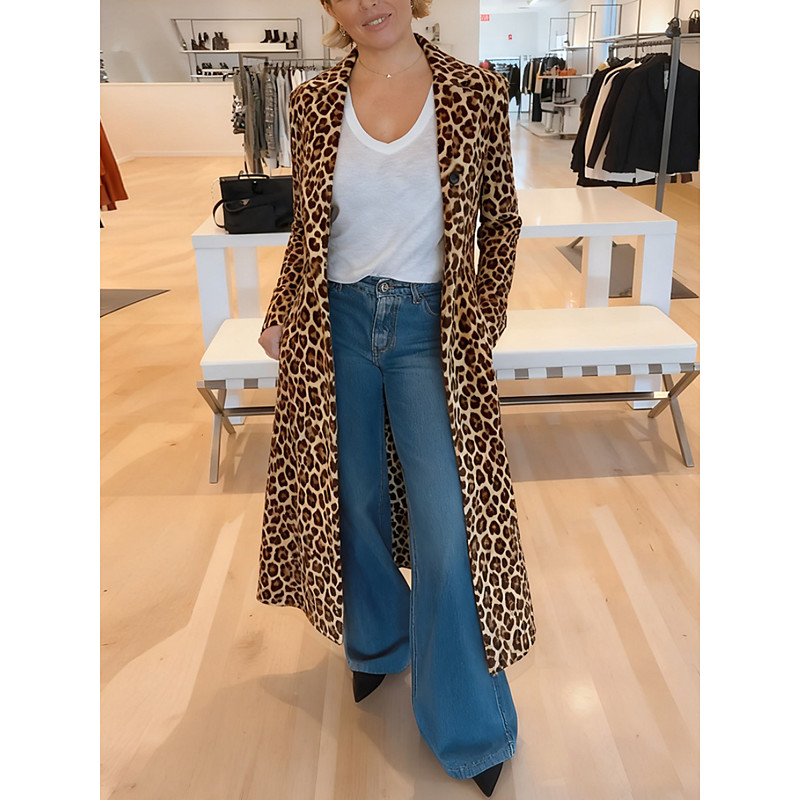 Women's Winter Coat Casual Jacket Comfortable Breathable Pocket Print Casual Leopard Casual Vacation Street Daily Wear Open Front Long Turndown Regular Fit Long Sleeve Outerwear Brown Khaki Spring