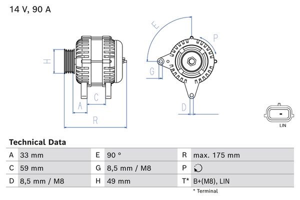 Laturi 14V 90A Bosch 0 986 085 170 - dacia, renault - OE 23 10 060 07R, 23 10 083 86R, 23 10 085 93R