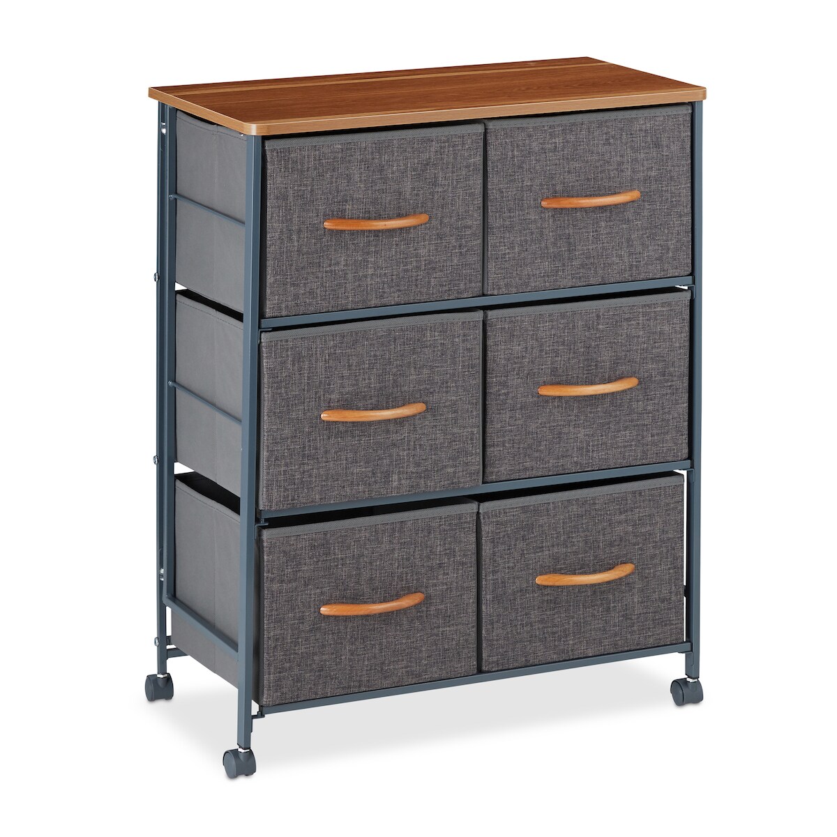Relaxdays Schubladenschrank mit Rollen, 6 Stoff Schubladen, Deko Stoffschrank, Holzoptik, HBT 74,5 x 58 x 30 cm, grau